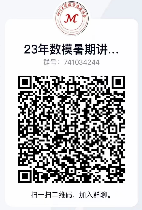 为方便相关信息及时共享,请有意参加暑期系列讲座的同学加qq群741034244,群名:23年数模暑期讲座群。