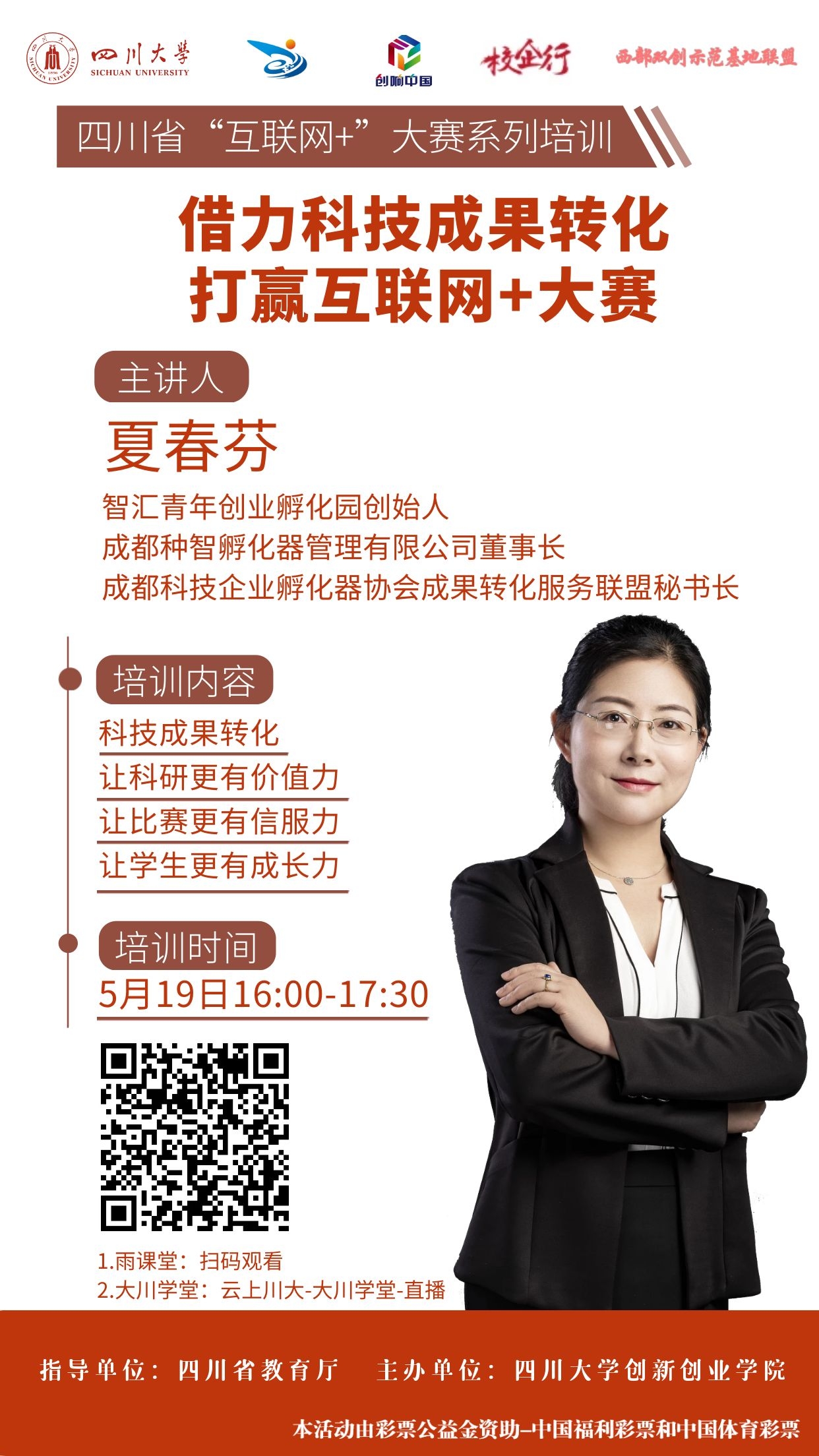 下一条:【讲座预告】第八届四川大学“互联网 ”大学生创新创业大赛系列讲座第五讲