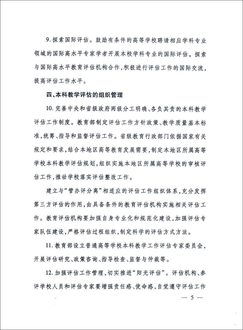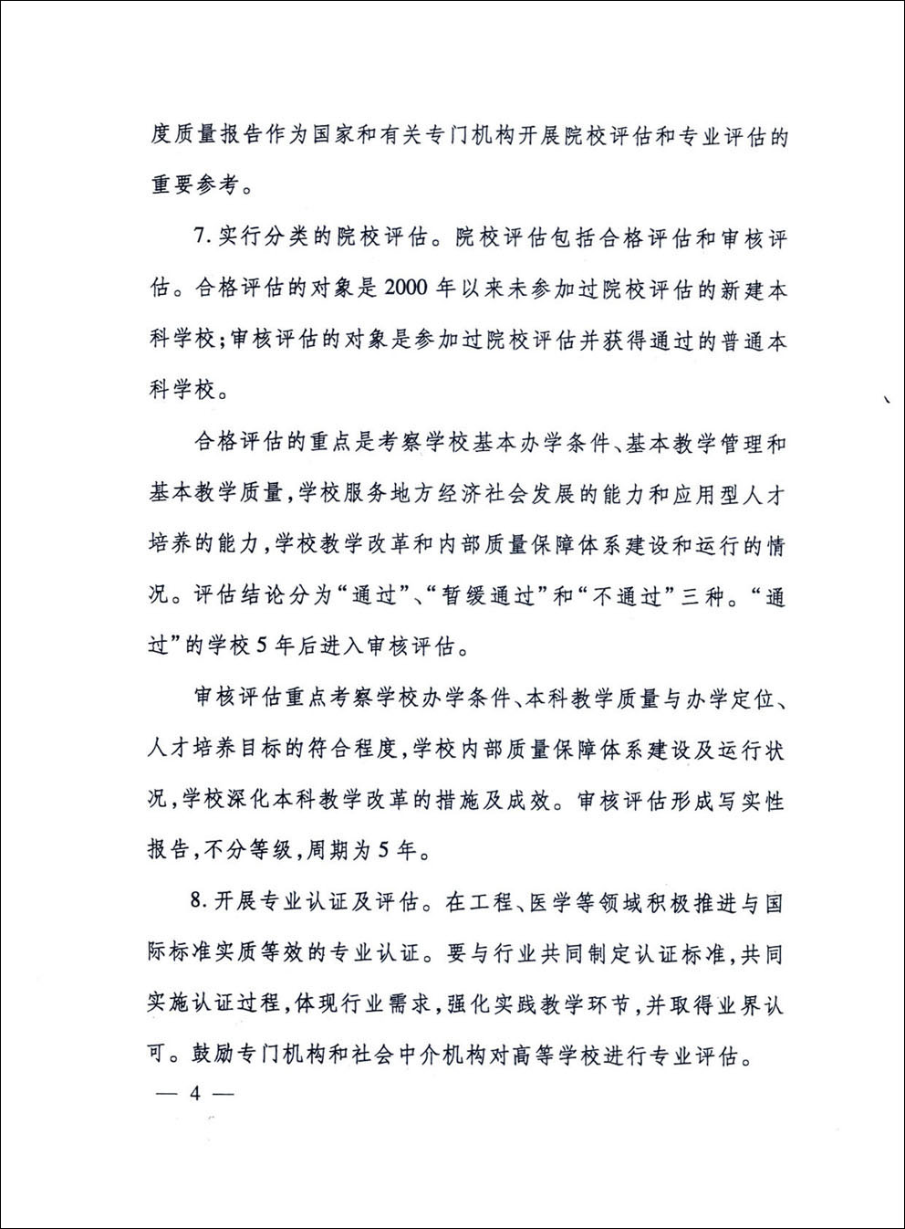 教育部关于普通高等学校本科教育评估工作的意见-pg娱乐
