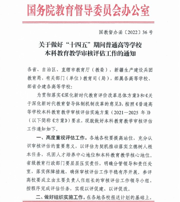 下一条:关于做好普通高校本科教育教学审核评估试点工作的通知(国教督办函[2021]55号)
