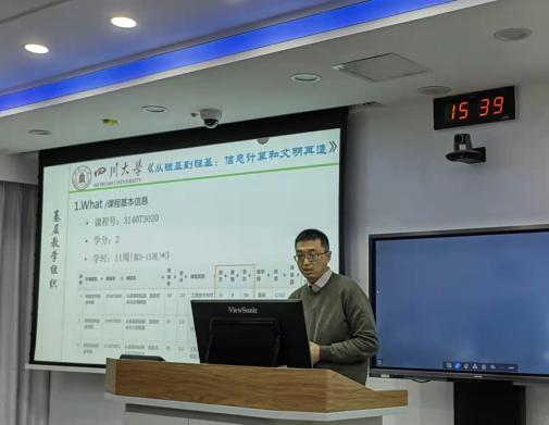 赵辉副教授以通识核心课《从碳基到硅基:信息计算和文明再造》为例,介绍了如何构建“跨学科、跨学院”的多学科融合的基层教学组织。这门由文理工艺医多学科融合的教学团队共同讲授的课程创新“线上 线下,大组 小组”的集体备课方式和授课方式,为多学科交叉教学团队建设提供了有益的参考。