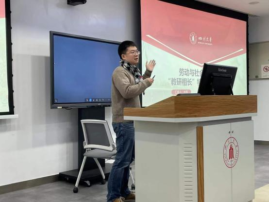 林熙副教授分享了劳动与社会保障专业“教研相长”特色课程的团队建设,介绍了课程团队教学与科研融合、价值与知识融通、课程与实践汇聚的建设理念、实施路径以及教学团队支持体系、特色和工作流程。分享了教学团队“闭环式-全过程”的课程研讨模式,展示了教学团队的建设成效,为教学团队建设提供了有益的参考。