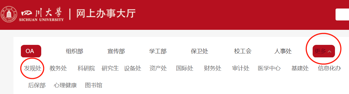 ⅱ.进入网上办事大厅后,依次点击红圈中的“更多”——“发规处”——“评教历史数据查询”图标。