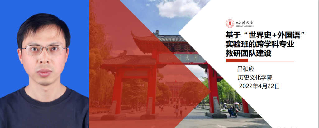 吕和应副教授通过“世界史 外国语”实验班的建设实践,分享了历史文化学院和外国语学院跨学科专业教研团队在实验班各项制度的创设、学生选拔和指导、课程建设和学科建设方面齐心协力,以师资团队建设反哺实验班专业建设的经验,提供了在院际合作的基础上实现专业和学科两个方面互利共赢的有益做法。