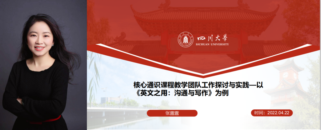 张露露副教授介绍了通识核心课《英文之用:沟通与写作》的“大班共探讨、小班主题制、全过程深度浸润”的特色教学,以及该门课程多学科多交叉教学团队的组建和工作推进。分享了不断探索交叉课程团队融为一体达成教学目标的有效实现的有益经验。