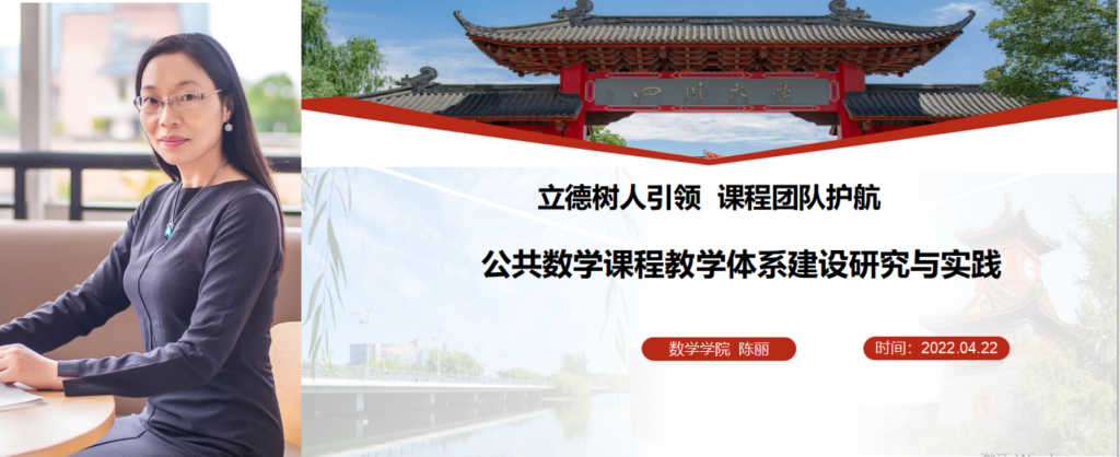 陈丽副教授介绍了公共数学的基本情况,分享了在学院管理、课程分管、教师梯队、能力培养等方面的课程团队建设,从教学流程、课程教学、第二课堂三个方面介绍了大学数学课程教学体系建设实践及成效,展现了四川大学公共数学教学模式及特色。