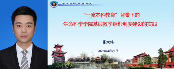 张大伟教授详细分享了生命科学学院的基层教研组织建设,通过三级教学管理体系建设,严格的基层教学组织活动考评,开展各类教学教研活动不断提升教师教学能力,青年教师上岗前通过岗前培训,建立质量导向激励机制等,以此保障全院基层教研活动的顺利开展,从而带动教师教学能力的提升,切实提高人才培养质量。