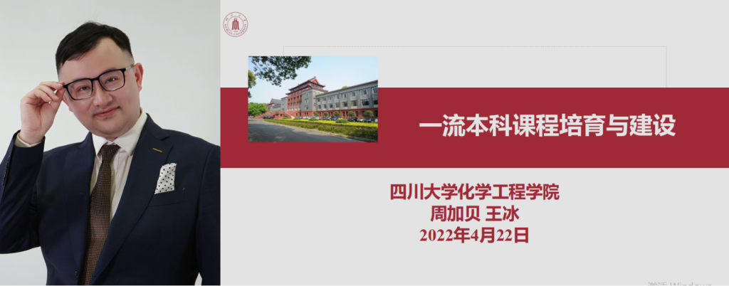 周加贝副教授分享了基于教师、学院和教研室协同进行的一流课程建设,以及申报准备的一些工作经验。介绍了化学工程学院通过制定标准,分步实施交流、选拔、培训、培育,以及助推等环节进行一流课程建设的实践经验。