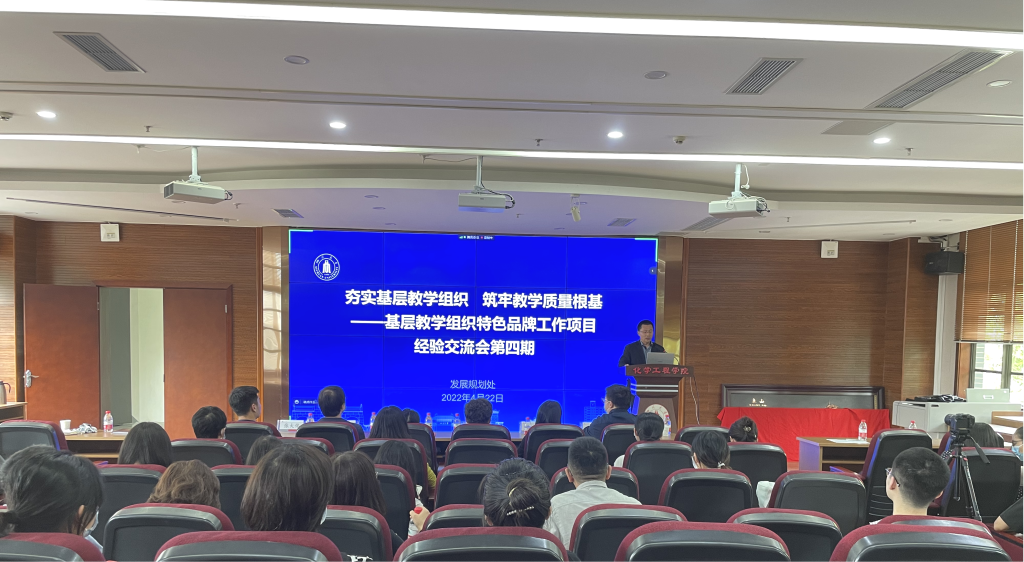 2022年4月22日下午15:00,四川大学基层教学组织特色品牌工作项目经验交流会(第四期)在化学工程学院学术报告厅举行。来自生命、历史、外语、建环、经济、数学和化工学院的7位基层教学组织特色品牌工作项目负责人分享了学院及各基层教学组织的有益做法和成功经验,发展规划处副处长孙克金、第二批基层教学组织特色品牌工作项目负责人及基层教学骨干教师等出席交流会。