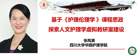 张凤英老师介绍了基于国家级一流课程《护理伦理学》建设教育部首批虚拟教研室建设试点 “人文护理学课程虚拟教研室”,分享人文护理学课程虚拟教研室在建设目标、主要内容、平台建设以及教研活动方面的经验,提出创新护理教研形态、加强教学研究、共建优质资源、开展教师培训、教研协作共享,共同推进护理教学改革,探索教学艺术,提高护理教学水平,主动应答新时代对护理人才培养的高要求和新挑战。