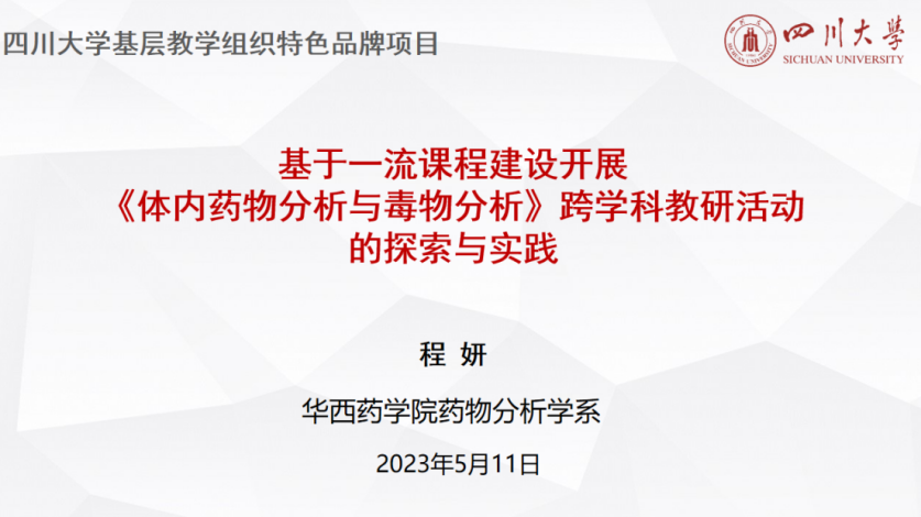 华西药学院程妍副教授分享了基于一流课程建设开展《体内药物分析与毒物分析》跨学科教研活动的探索与实践,详细介绍了课程建设、教学改革、项目实施举措等,在最新公布的第二批国家级一流课程认定结果中,《体内药物分析与毒物分析》被认定为国家级线下线下混合式一流课程。