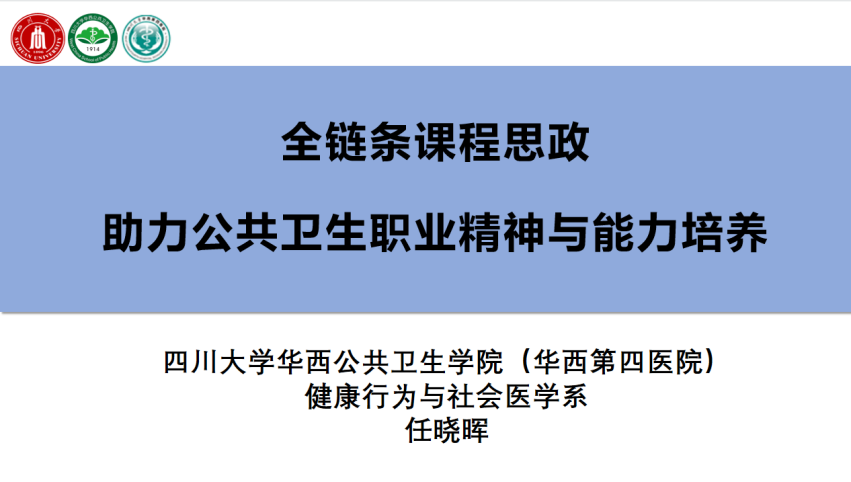 华西公共卫生学院任晓晖副教授从培养思路、培养途径、培养成效等方面分享了全链条课程思政助力公共卫生职业精神与能力培养。
