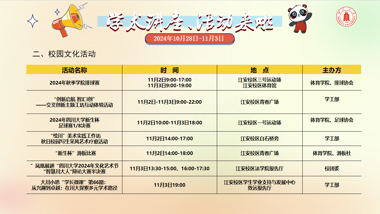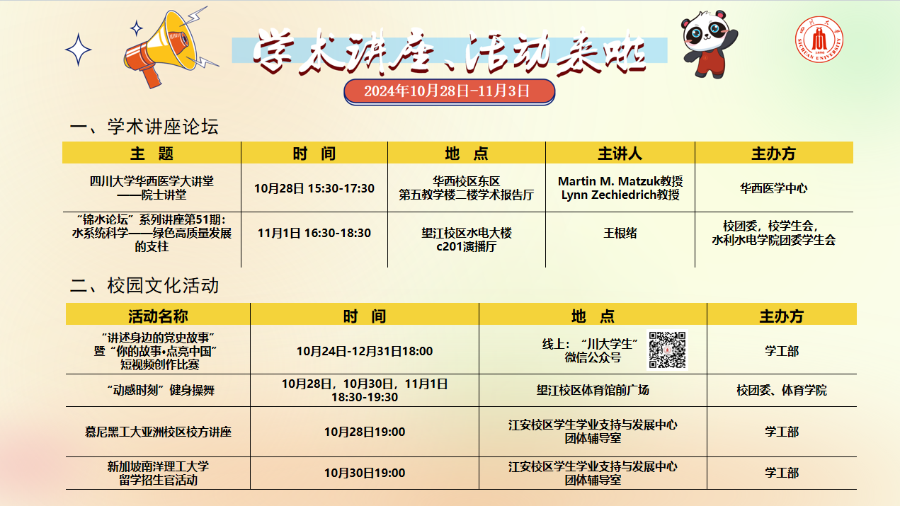 学术讲座及校园活动文化预告(10月28日-11月3日)
