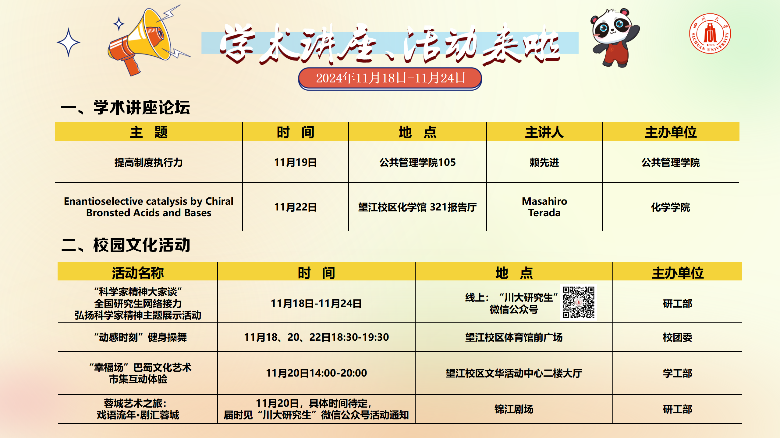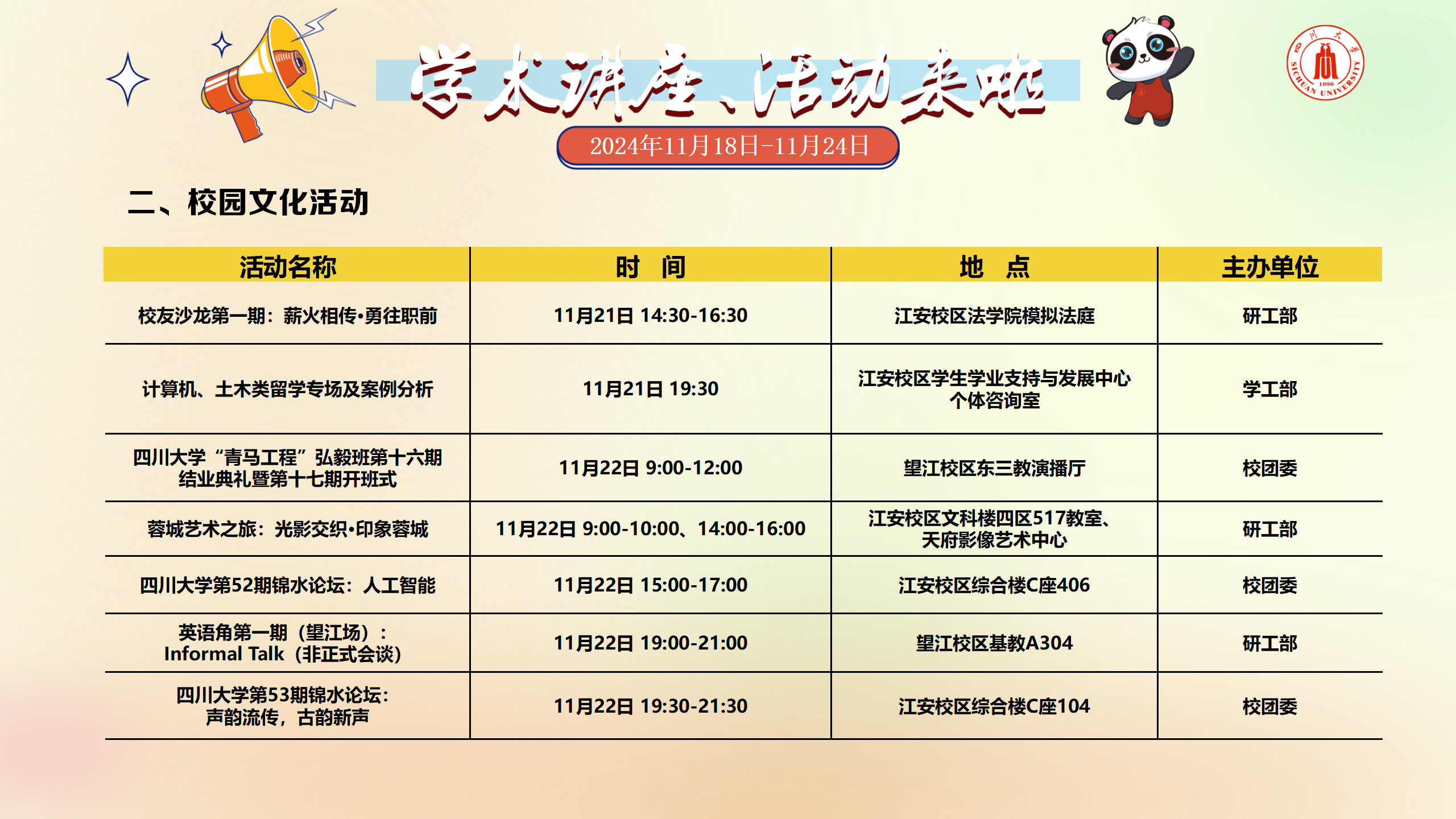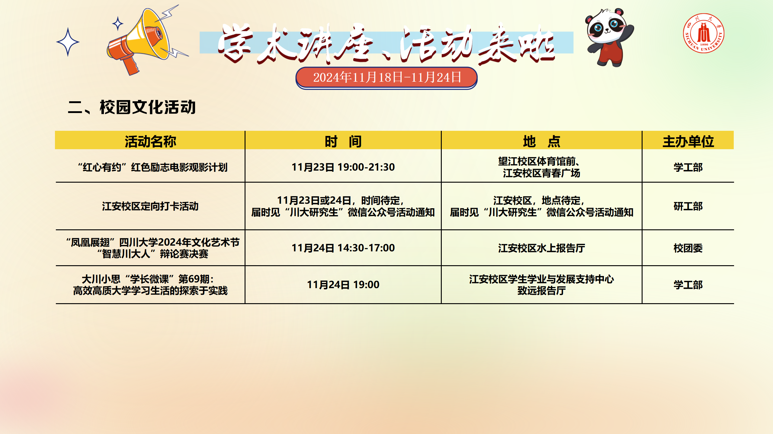 学术讲座及校园活动文化预告(11月18日-11月24日)