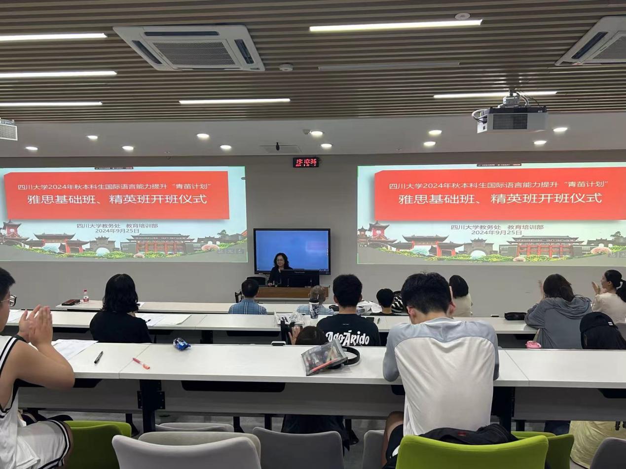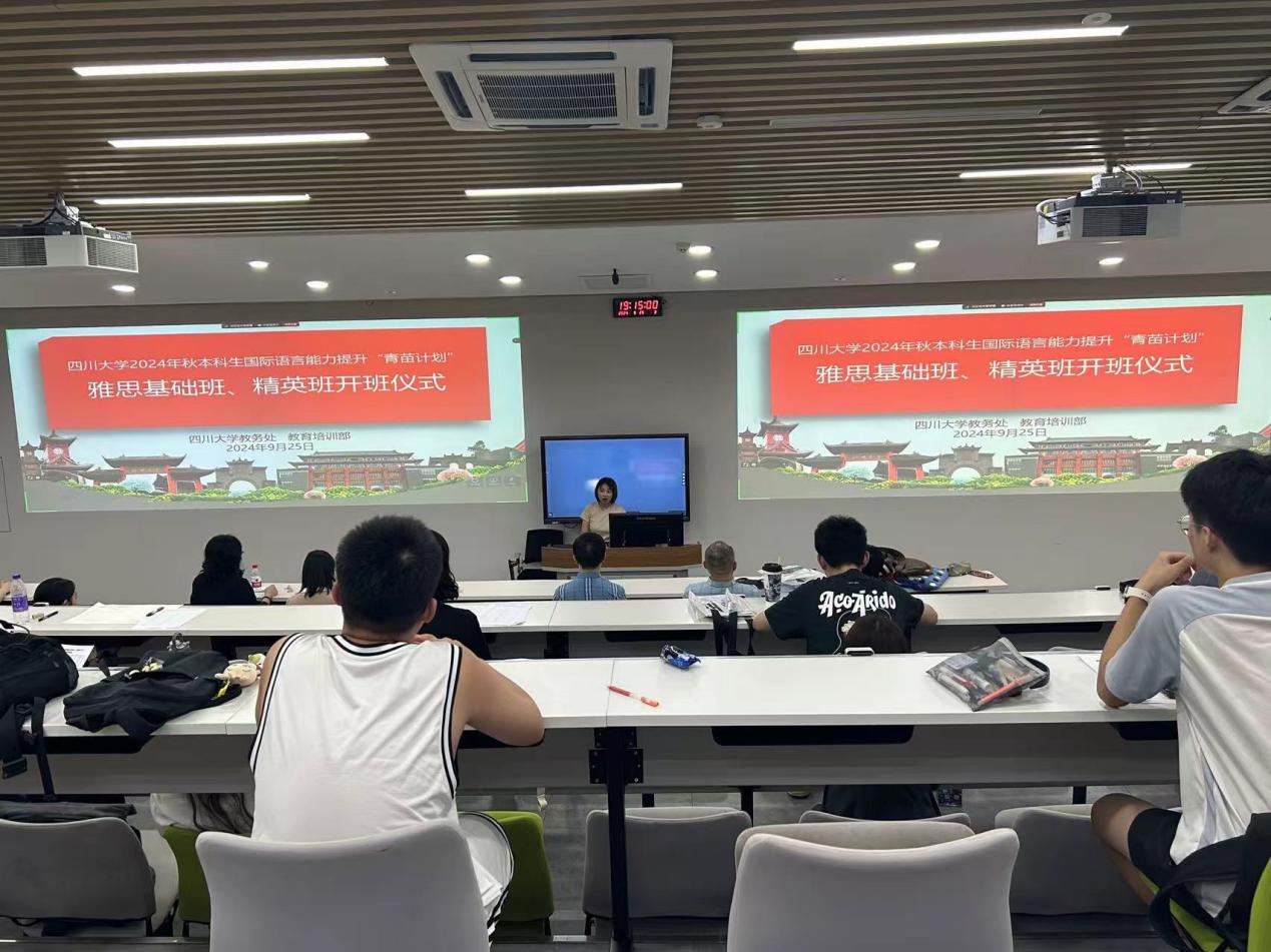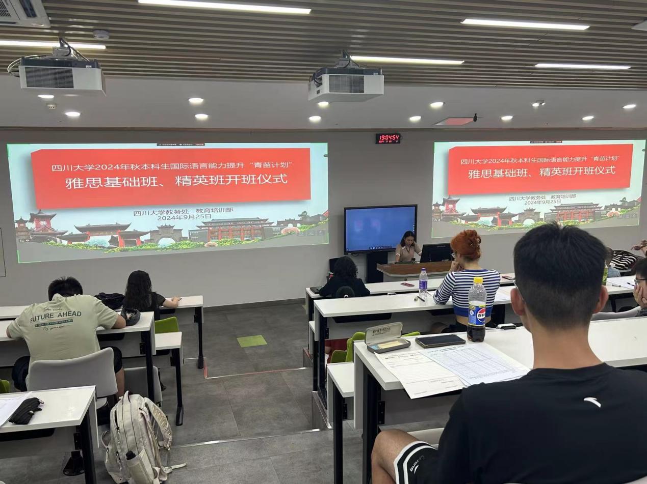 为深入贯彻党的二十届三中全会精神,积极响应国家关于教育对外开放的战略部署,教务处携手教育培训部,合作开办国际语言能力提升“青苗计划”雅思基础、雅思精英班,旨在切实提高我校本科生国际语言交流能力。9月25日晚19:00,2024年秋本科生国际语言能力提升“青苗计划”开班仪式在望江校区基础教学楼c104主会场举行,江安一教b302分会场同步直播,共计96名同学参加。