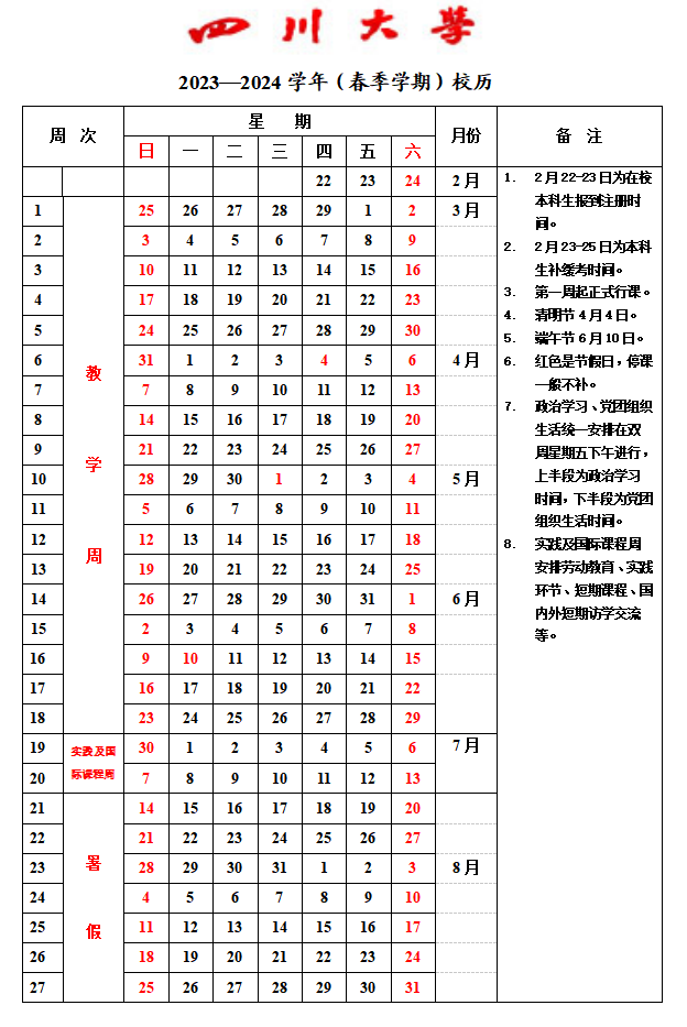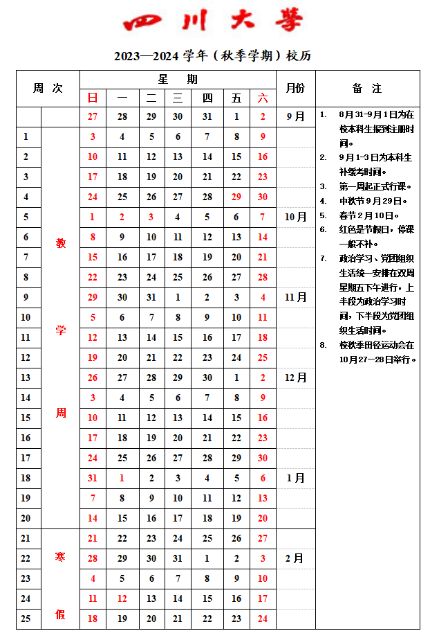 2023-2024学年四川大学校历
