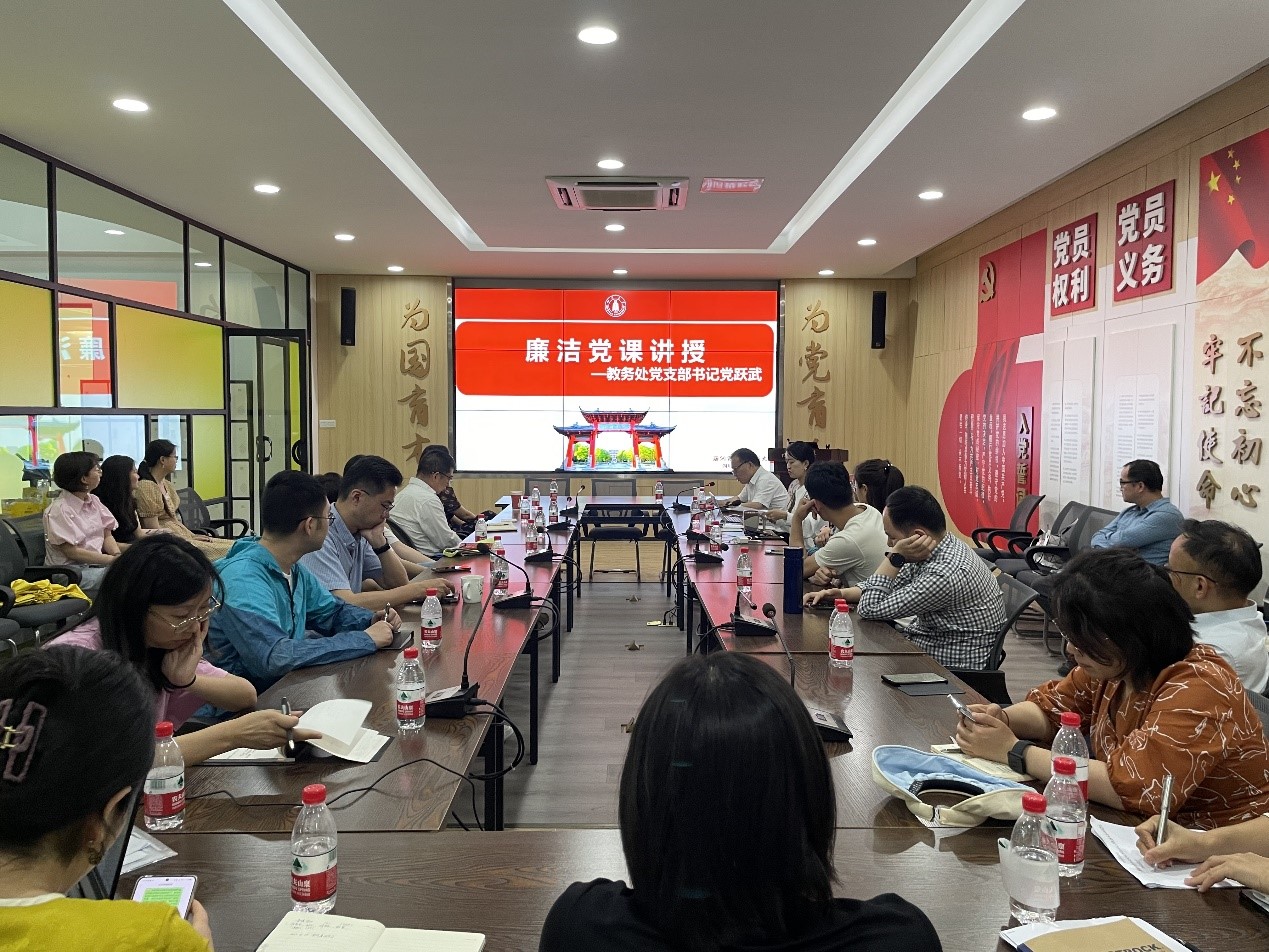 为全面贯彻落实党的二十大精神,推进校园廉洁文化建设,积极弘扬机关清廉守正,担当实干,增强廉洁从政、廉洁修身意识,419日下午,教务处在望江校区基础教学楼a315开展廉洁教育学习。