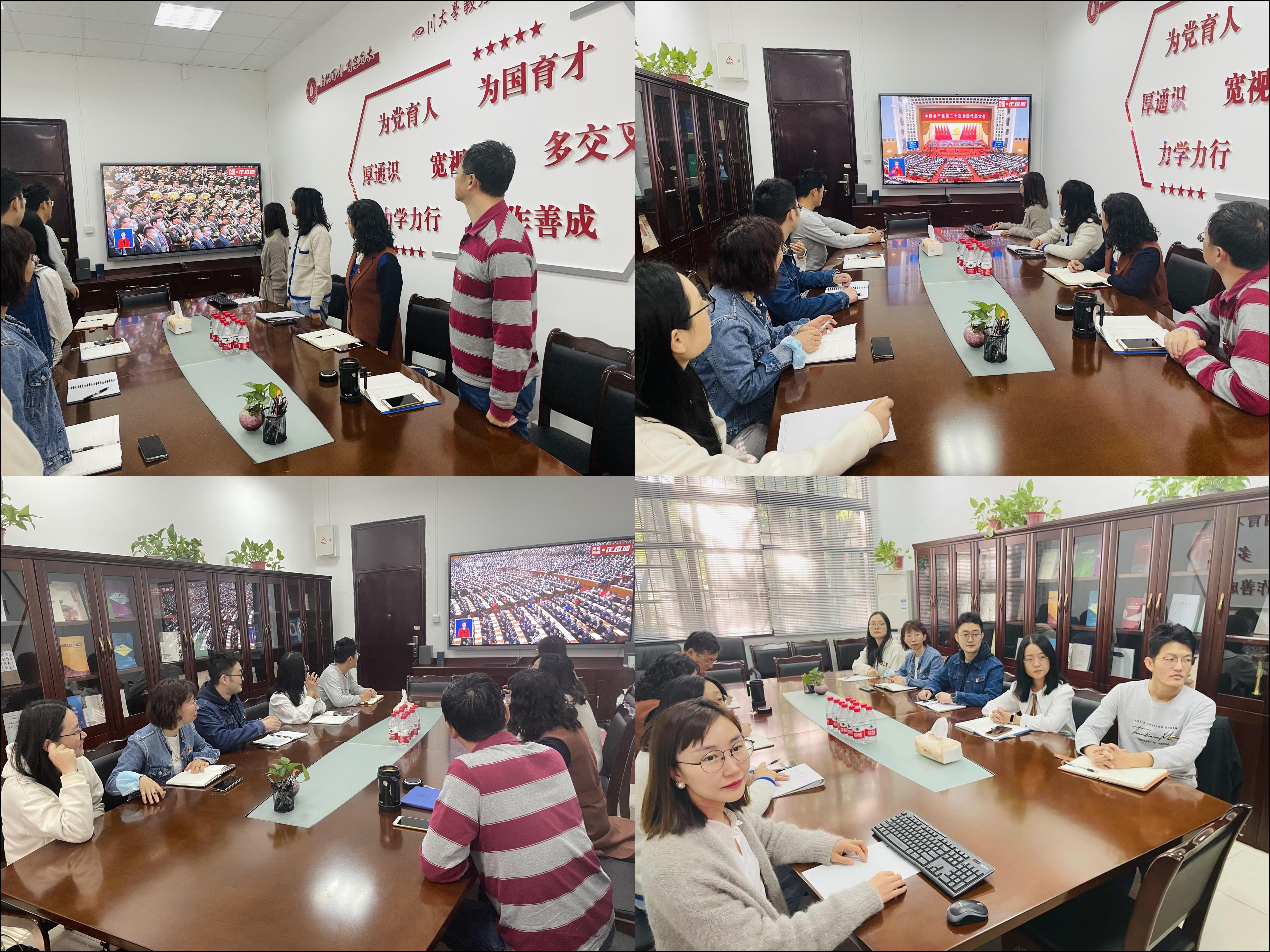 10月16日上午,教务处组织教职工在望江校区行政楼216集中收看中国共产党第二十次全国代表大会开幕盛况,认真学习聆听习近平总书记在大会上的报告。