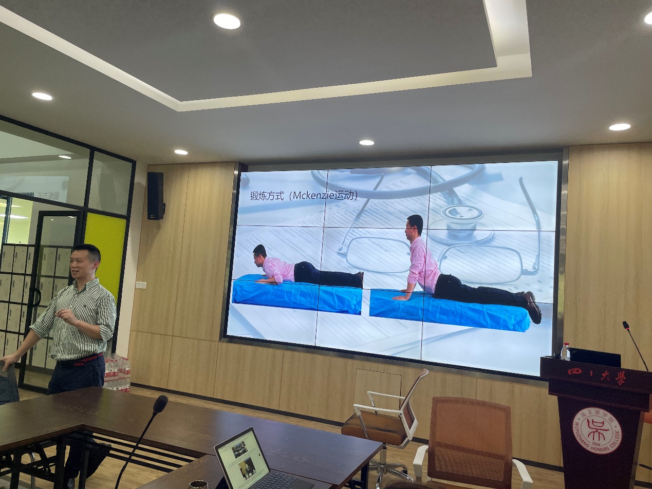 5月20日,四川大学教务处党支部和工会小组邀请到华西医学康复中心姜俊良副教授以“关爱脊柱 为党健康工作50年”做专题讲座。姜俊良副教授是华西医院康复医学中心肌肉骨骼物理治疗部主管,副主任物理治疗师,中国康复医学会康复治疗专委会委员,四川省康复治疗师协会理事,主要致力于肌骨疼痛,运动损伤等方向的医疗、教学、科研。