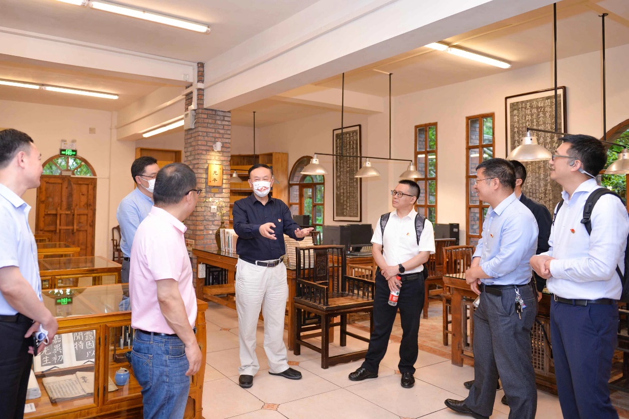 座谈会结束后,标榜学院领导陪同四川省教育厅高校学生工作处党支部和四川大学教务处党支部的同志,共同参观了标榜学院党群工团服务中心、图书馆(博雅精舍)、大府邸实训基地、发艺博物馆和实训室、家具制作实训室等处。本次党建活动取得了圆满成功。