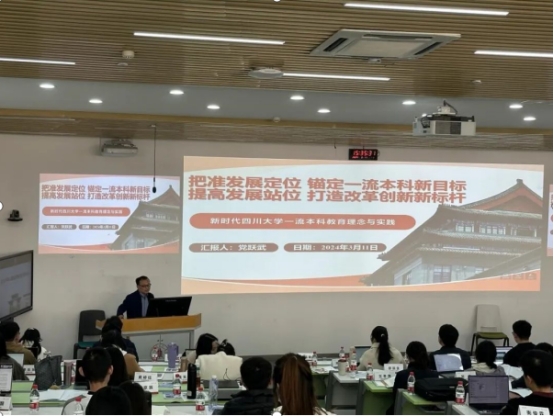 3月11日,在望江校区基础教学楼c201室,教务处处长党跃武教授面向第十八期新教师培训班学员和教务处全体科处长,主讲了“海纳讲习所”“聚焦高质量发展,创建‘三个一流’”系统讲座——“新时代四川大学一流本科教育理念与实践”。
