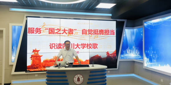 教务处处长党跃武以“服务‘国之大者’,自觉挺膺担当——识读四川大学校歌”为题讲授党纪学习教育专题党课。党跃武首先指出要充分认识党纪学习教育的重要意义、目标任务和基本要求,要以更高标准学好用好党纪处分条例,以实实在在的发展成果体现党纪学习教育的实际效果,把党纪学习教育与认真落实学校“1 5”文件和“4 项重点工作”紧密结合起来。校歌是学校文化的“播种机”,是学校精神的“放大器”,是学校发展的“加油站”。他以识读四川大学校歌为切口,展现了学校 128 年发展历程中“立足西部”“面向全国”“放眼世界”的发展路向、“振兴民族”“献身国家”“奉献社会”的历史使命、“涵乾纳坤”“合而能融”“更上层楼”的文化特质。希望全处党员干部和职工在传听、传唱、传学川大校歌中,在“感悟川大文化,弘扬川大精神”中,强化党纪学习教育的自觉,汇聚教育教学改革的动力,努力打造学校“三个一流”创建和一流本科教育创新“两个标杆”。