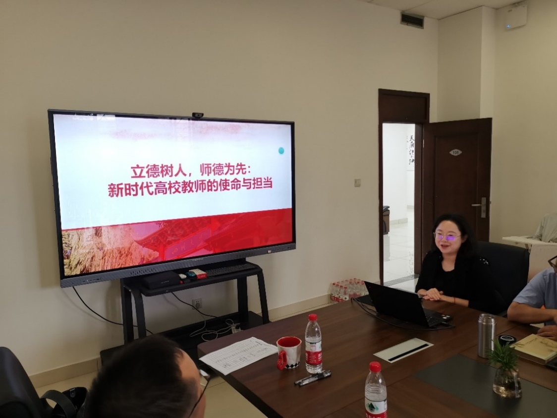 教师教学发展科科长林祎“以案为鉴”,阐述师德师风是评价教师队伍素质的第一标准,教师应该把师德师风建设放在首要位置,同时以“立德树人,师德为先:新时代高校教师的使命与担当”为题进行了分享,为党育才,为国育人,教师们要争做有理想信念、有道德情操、有扎实学识、有仁爱之心的四有好老师,要认真学习“教育家精神”,努力成为“教育大先生”。