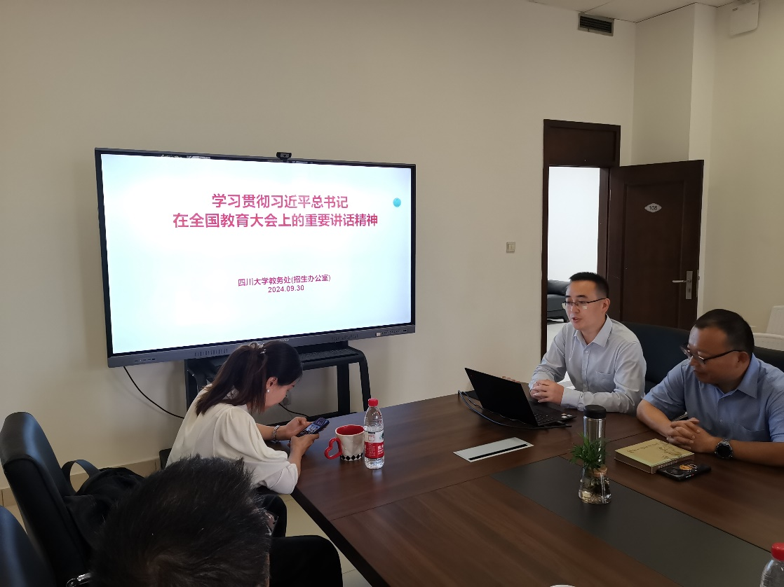 值全国教育大会胜利召开之际,为更好地落实习近平总书记在全国教育大会上的重要讲话精神,9月30日,教务处党支部特色品牌学习活动“海纳讲习所”(第十一期)系列讲座在江安校区行政楼108室举办,本次活动从师德师风主题教育和党的第二十届三中全会精神学习两个方面展开。