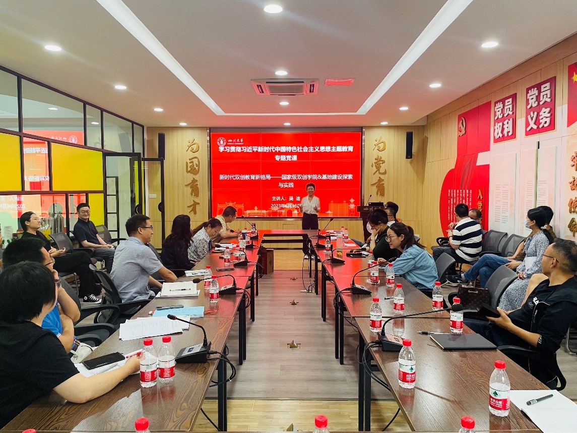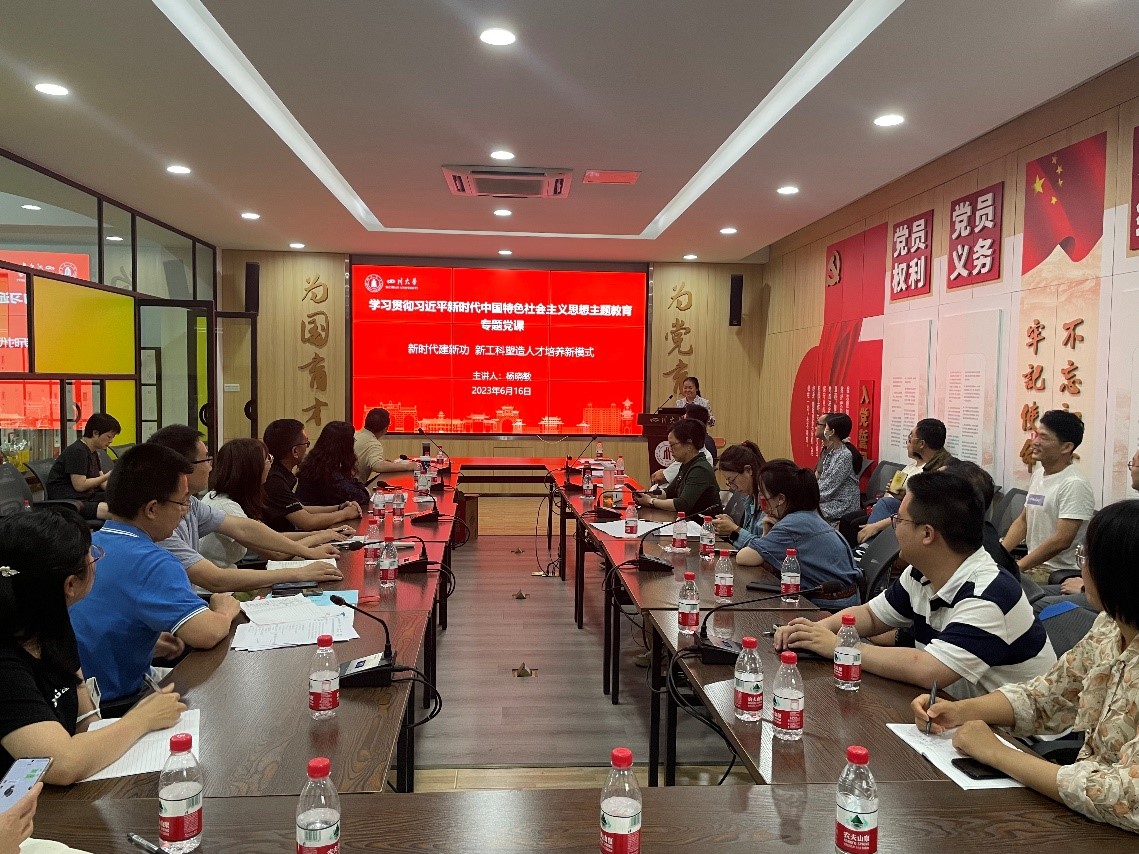 2023年6月16日,教务处党支部在望江校区基础教学楼a315室开展了学习贯彻习近平新时代中国特色社会主义思想主题教育专题党课。