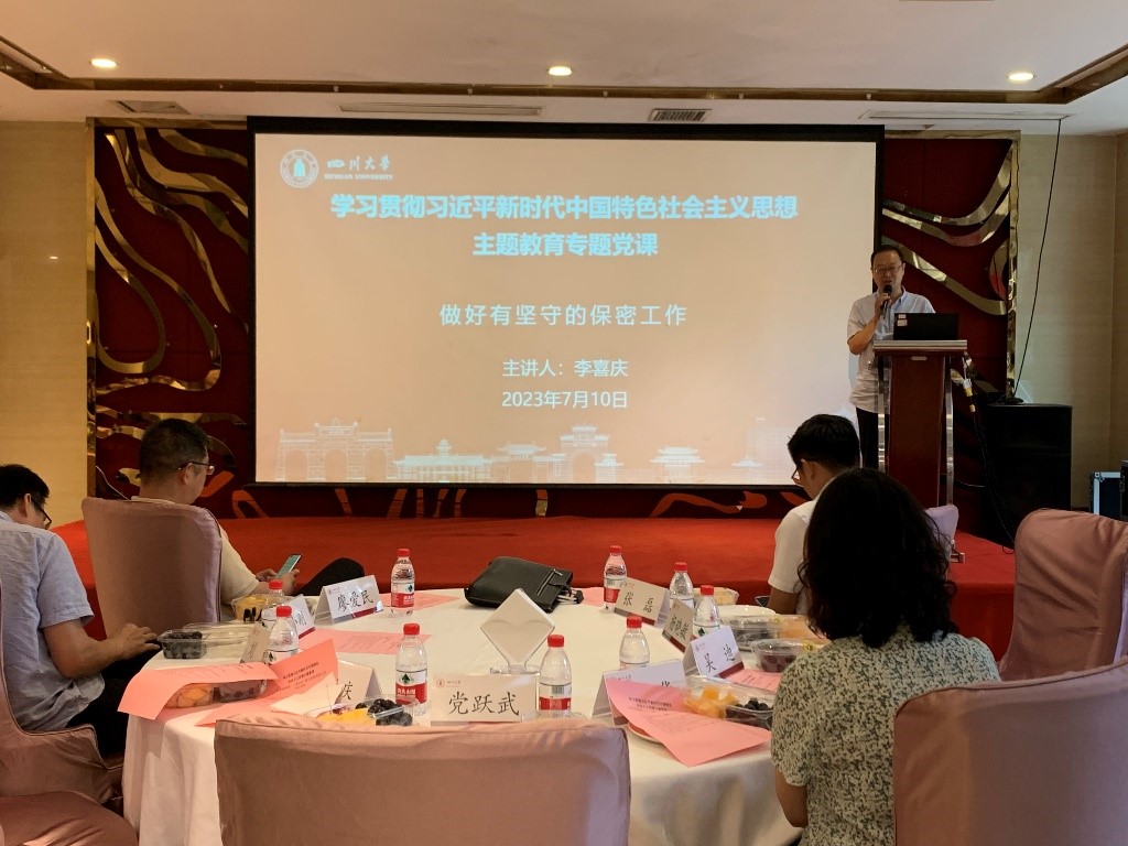 党委统战部副部长李喜庆以“做好有坚守的保密工作”为题讲授专题党课,他解读了秘密的概念和分类,介绍了大家身边的国家秘密和工作秘密,给出了树牢保密意识、准确识别国家秘密和工作秘密标识、规范处理涉密信息等做好保密工作的建议,并分享了关于坚守的工作感悟。