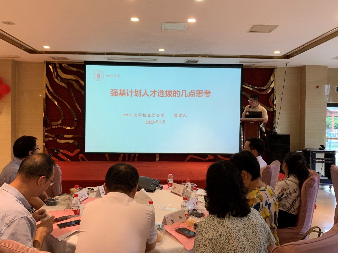 教务处招生办公室副主任廖爱民以“强基计划人才选拔的几点思考”为题讲授专题党课,他主要从基础学科拔尖人才选拔基本情况、强基计划人才选拔背景和特征以及强基计划人才选拔需要厘清的几个方面等展开了介绍,强调要选拔培养有志于服务国家重大战略需求且综合素质优秀或基础学科拔尖的有志向、有兴趣、有天赋的青年学生