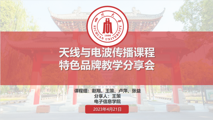 王策副研究员介绍了《天线与电波传播》这门电子科学与技术中关于天线与电磁波空间传播的重要课程,分享了课程团队在课程思政、教学方案设计、教学反馈与反思等课程建设中的经验。