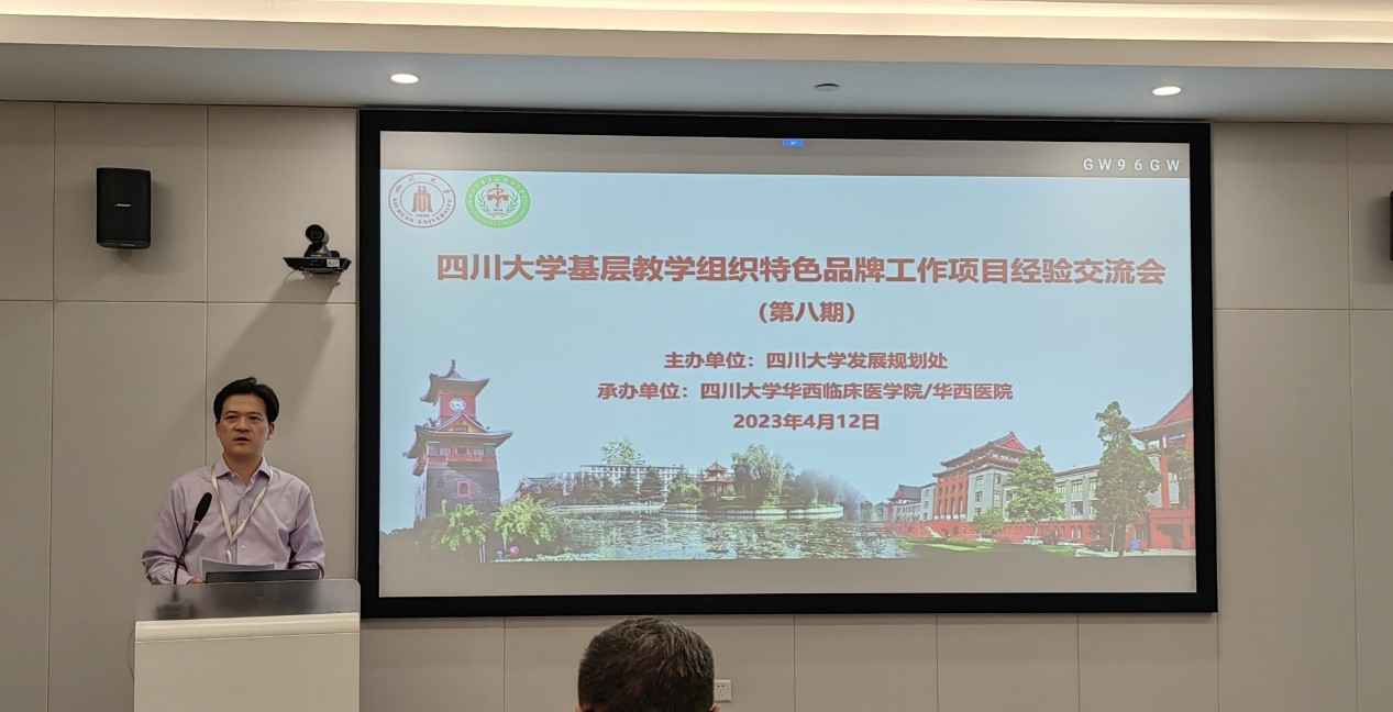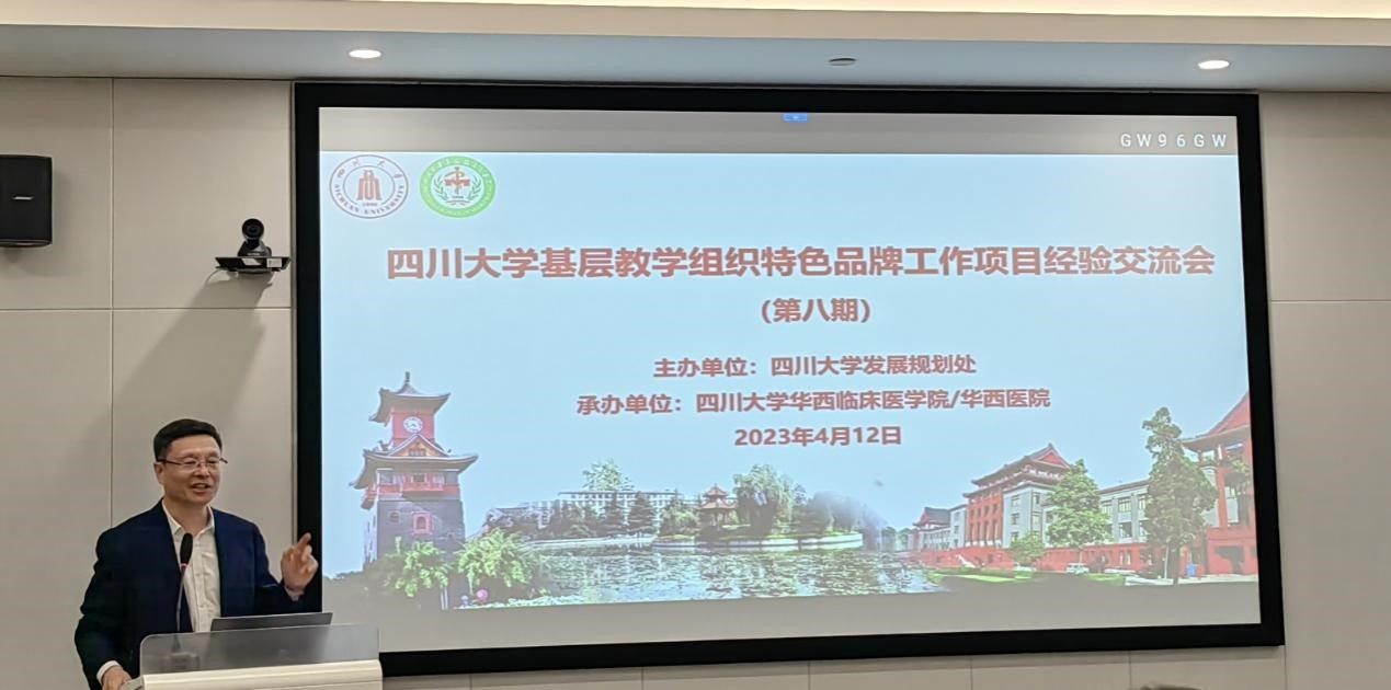 发展规划处孙克金副处长致辞,他首先介绍了学校开展基层教学组织特色品牌工作项目的背景,以项目为抓手强化基层教学组织的建设,通过“大川学堂”视频课程等形式传播特色教学品牌。基层教学的每一个进步都是基层教师的努力成果,他希望华西临床医学院继续发挥优势,在学科建设和人才培养上取得进一步的提升。