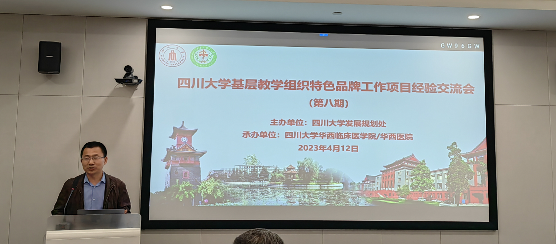 2023年4月12日下午,四川大学基层教学组织特色品牌工作项目经验交流会(第八期)在华西校区临床医学教学楼三会议室成功举办。华西临床医学院研究生教学相关的4位基层教学组织特色品牌工作项目负责人进行了交流汇报。四川大学研究生院常务副院长万学红教授,四川大学发展规划处孙克金副处长出席会议并讲话,会议由华西临床医学院研究生部部长苏白海教授主持。